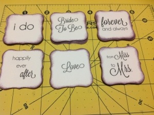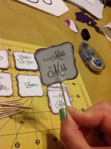 On the invitation I used the fonts champagne and limousines and lavanderia regular. I carried those through for these cuties. You can make a design in word, publisher, photoshop, or even use a small stamp.