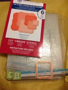1. Decide what shape you will be cutting. I wanted to use a fancy label from spellbinders, but if you don’t have specialized tools you can just cut them out as a square or rectangle. Another option is to use a punch.