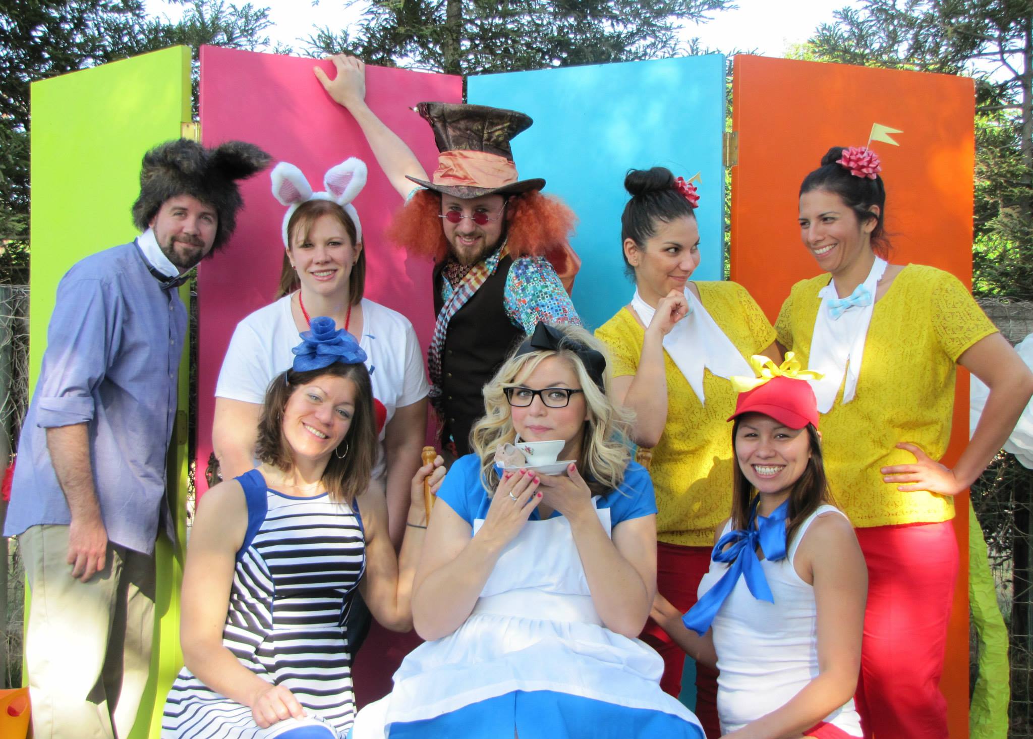 [J] Next we knew we had to have some super cute Alice in Wonderland props. We definitely had a blast with our props so we highly recommend a photo booth. A lot of the props we used came from previous costume parties we’ve had but we always seem to start off at one place: the Dollar Store. We found a lot of cool glasses & also found a HUGE comb that was hilarious. They have a great variety of little joke items; just look for fun items that are a little out there.