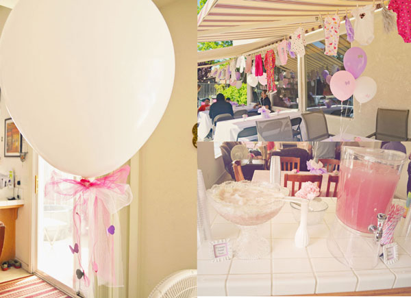 Other elements were champagne punch, pink lemonade, a giant balloon, and hanging baby clothes.