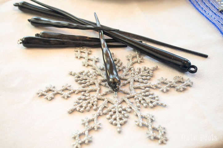 The tree branches I’ve used before, but I made custom ornaments this year. A tree from the north would definitely have snowflakes and plenty of ravens. Thank goodness Hobby Lobby puts their Christmas items out in June so I was able to grab the snowflakes, confetti, table runner, and other odds and ends to create the perfect look.